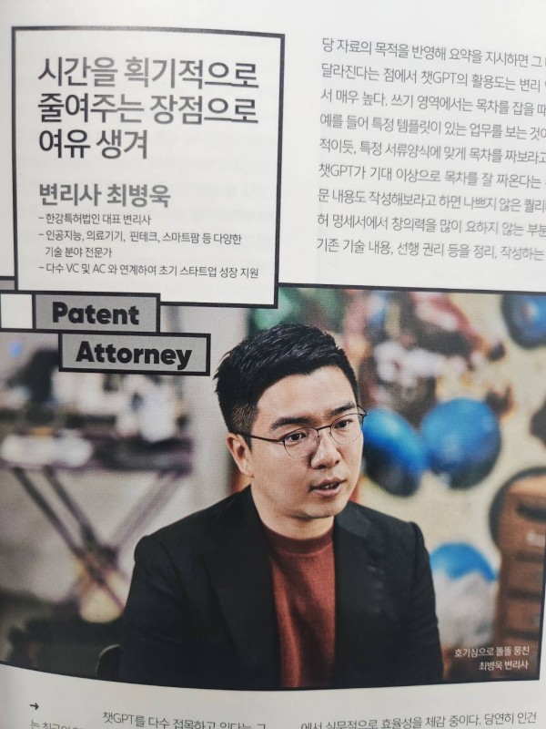 한강특허법인 최병욱 대표 변리사의 CHAT GPT와 직업에 대한 인터뷰가 SK증권의 스마트시티 매거진 XITY에 실렸습니다.