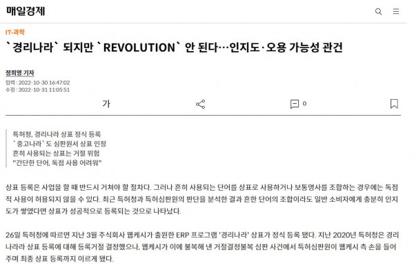 서무원 한강특허법인 변리사가 매일경제에서 상표 등록 관련 인터뷰를 진행하였습니다.